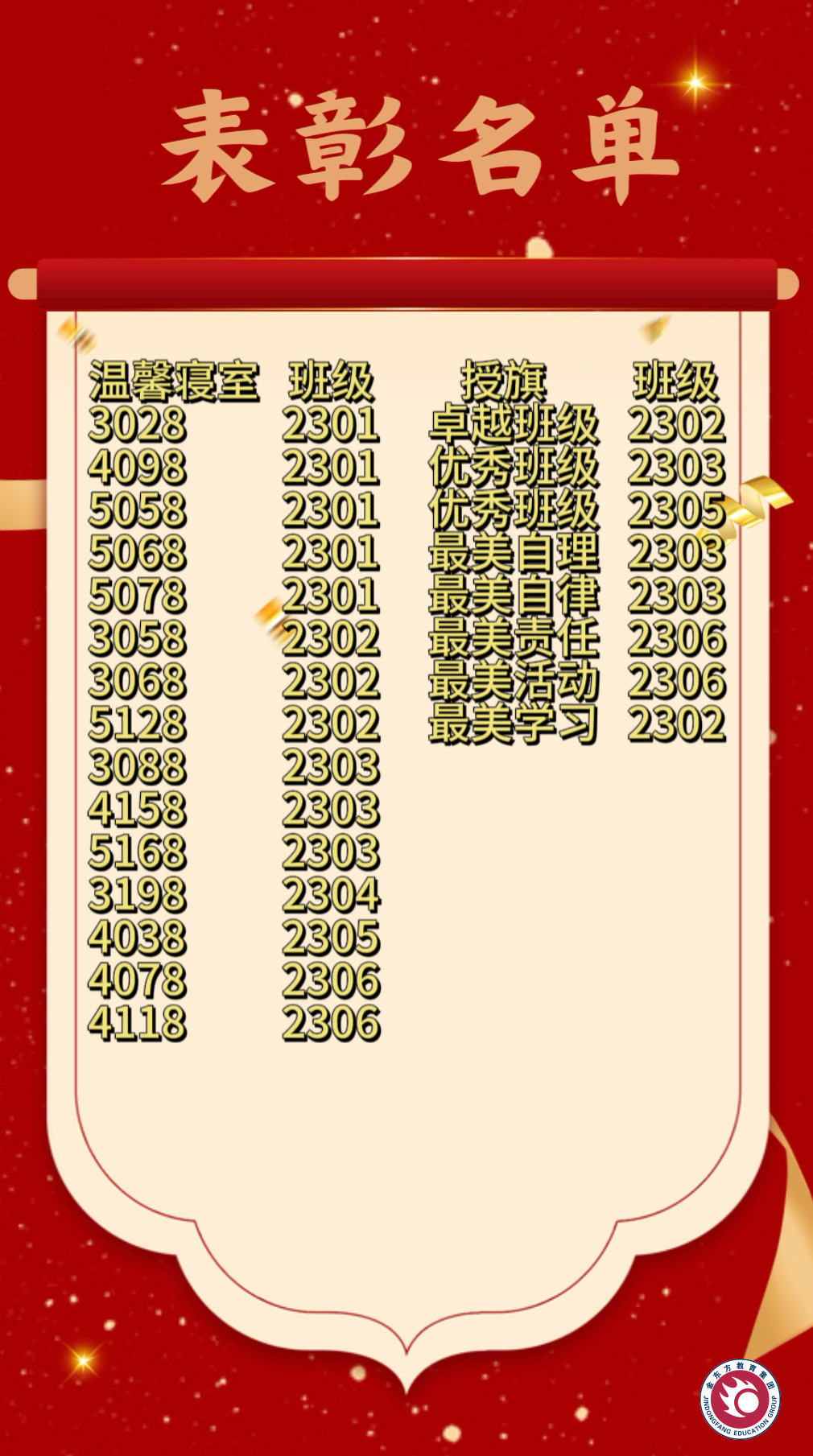 为鼓励先进、树立典型,进一步调动全体师生的积极性和主动性,营造浓厚的学习氛围,11月6日升旗仪式上,金东方复读中心对10月先进集体予以表彰。学生管理办公室秦主任宣读表彰决定,希望大家以受表彰同学为榜样,刻苦学习、勇于拼搏,坚持不懈地朝着既定目标迈进。