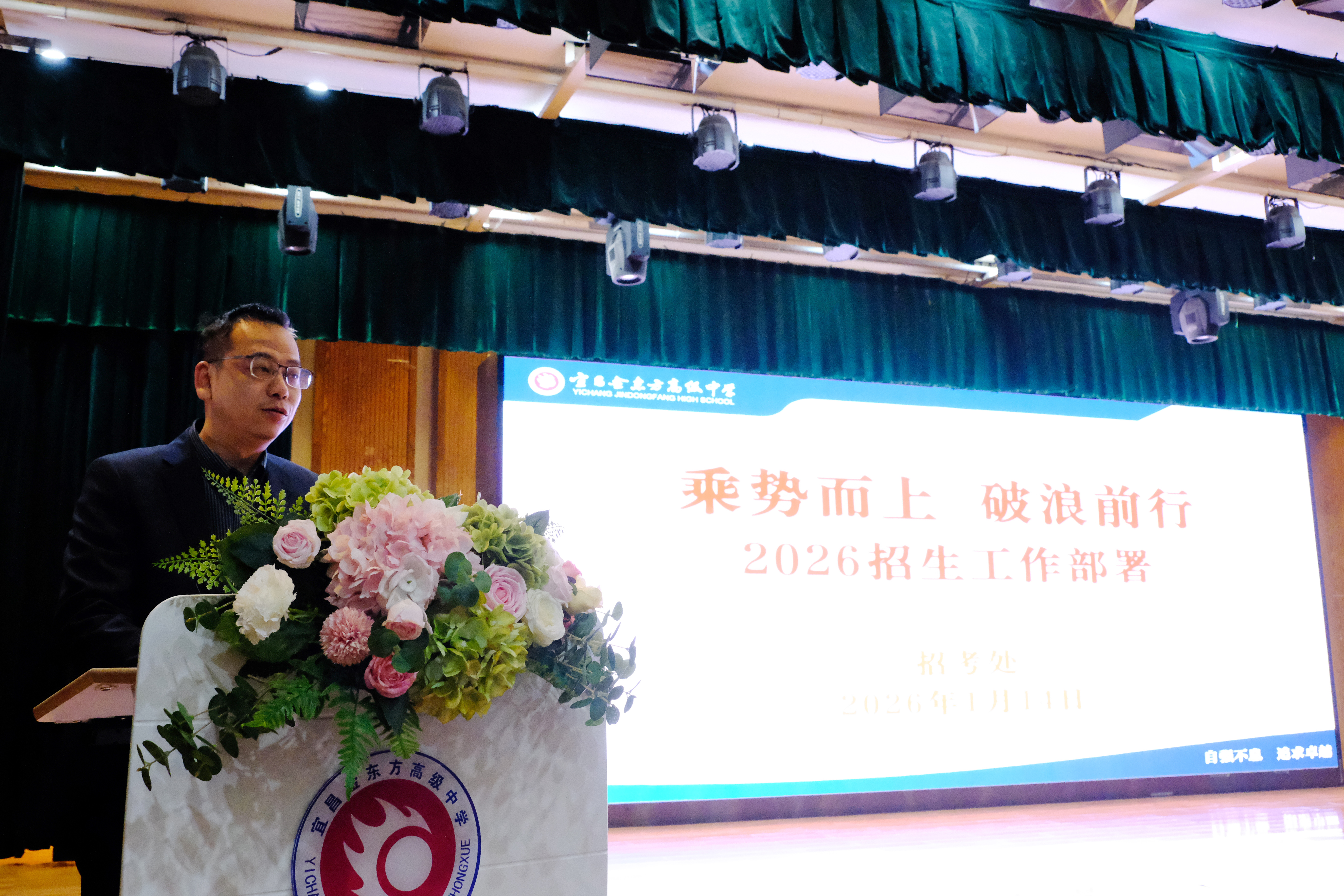 大会第二篇章聚焦招生工作。2025年,全体金高人精诚团结,圆满完成“既招满又招好”的招生目标,学校对招生先进代表进行表彰。招考处主任赵维对2026年招生工作作出详细部署,号召全体教职工继续凝心聚力、苦练内功,推动学校生源质量持续提升。