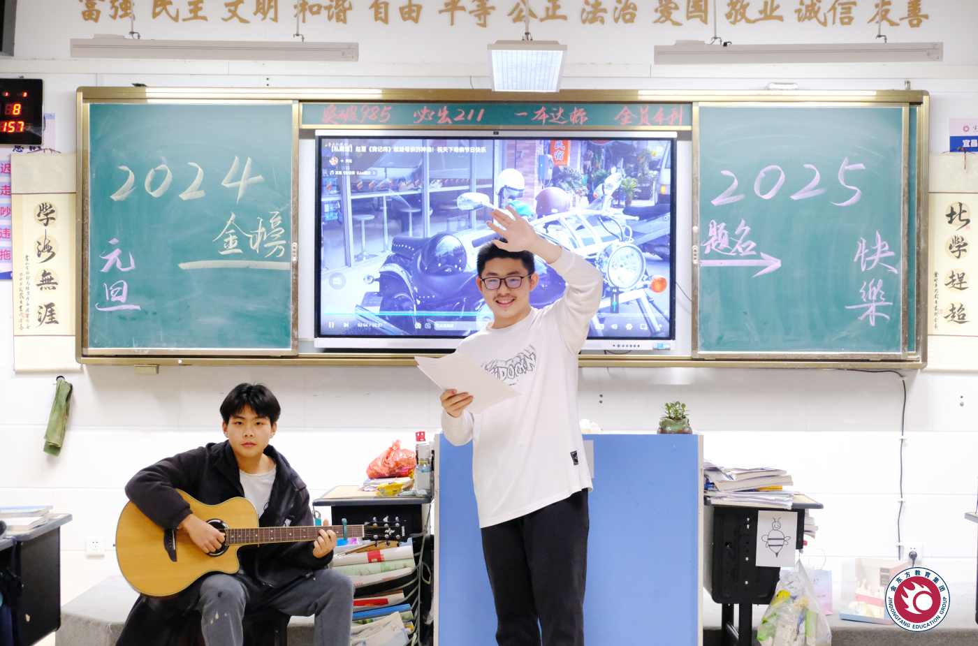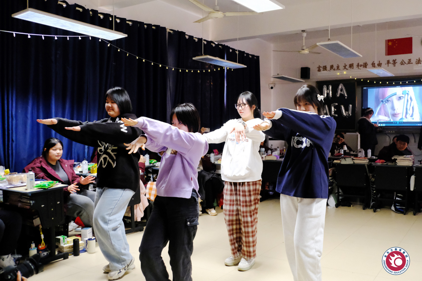 欢歌笑语辞旧岁,载歌载舞迎新年。1月1日,在元旦佳节来临之际,金东方高中举办庆元旦班级活动。