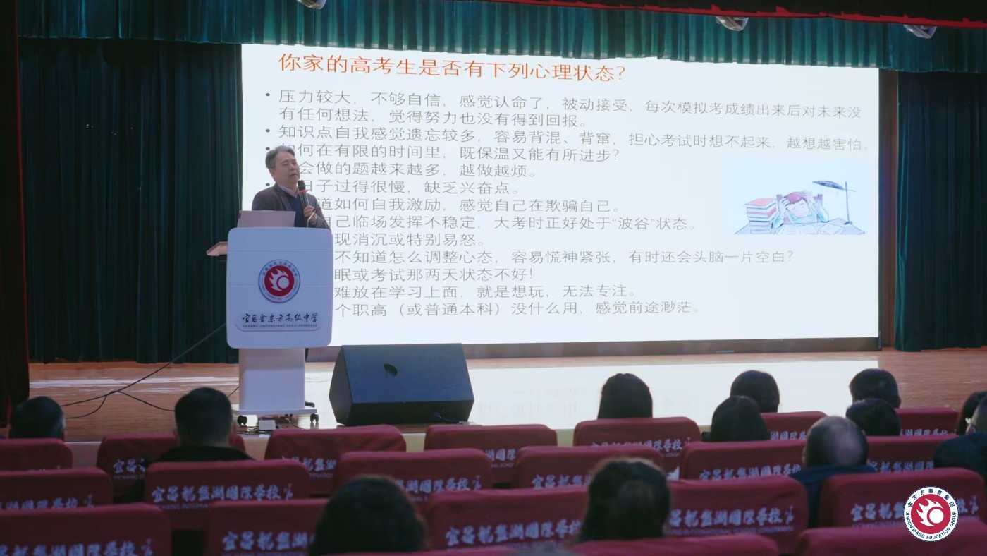 近日,宜昌《宜家向未来》家长课堂公益讲座在金东方高中开讲,近400名高三学生家长到场聆听。本次活动由市教育局、市妇联、三峡融媒体中心联合主办,特邀武汉理工大学心理健康与生涯发展研究所所长、武汉理工大学教授雷五明分享亲子沟通技巧,为高三学子升学护航。