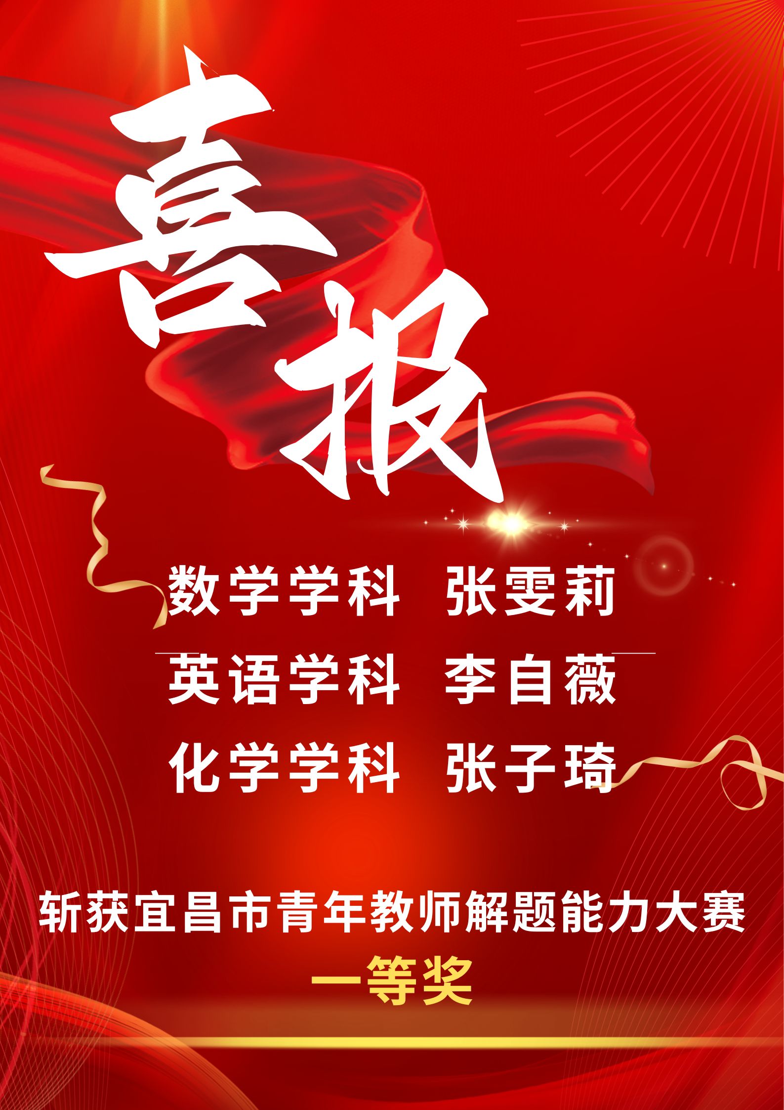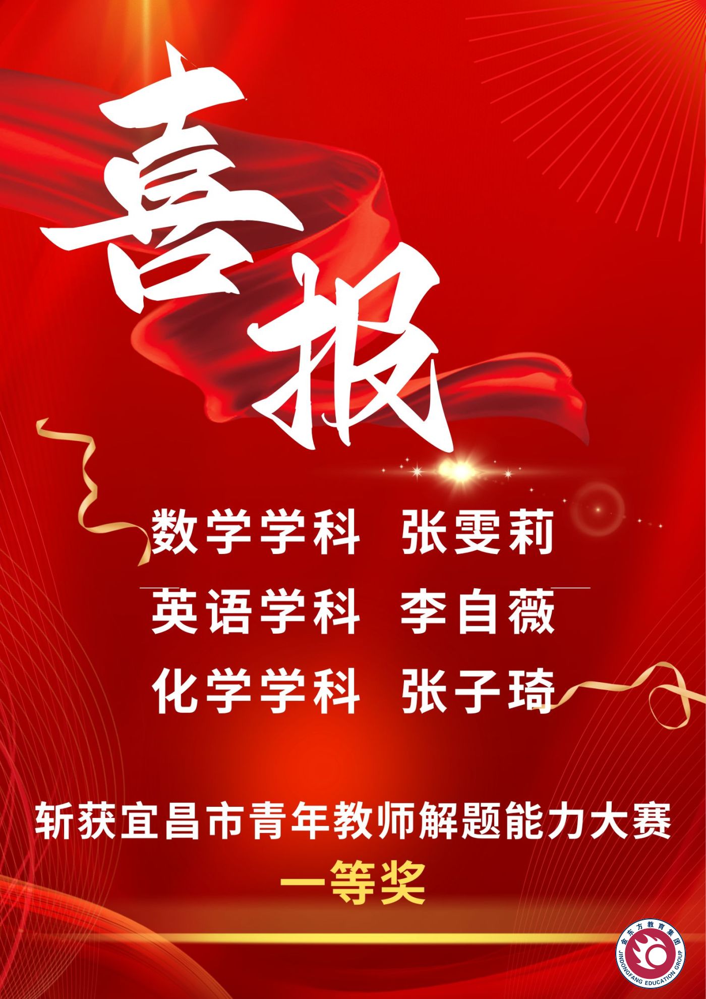 近日,2026年宜昌市高中青年教师解题能力大赛落幕。大赛覆盖9个高考学科,吸引全市26所高中215名35岁以下青年教师参赛,以赛促教助力高中教育高质量发展。金东方高中教师积极参赛,凭借教师扎实的专业素养,斩获3个一等奖。数学教师张雯莉、英语教师李自薇、化学教师张子琦展现了学校青年教师的专业功底,彰显了学校教师队伍建设成效。